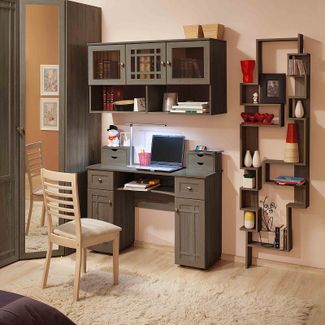 Шкаф навесной Шерлок обеспечит аккуратное хранение книг и предметов декора. Предусмотрены как закрытые ниши, так и открытые. Стекла на фасадах затонированы.<br>
