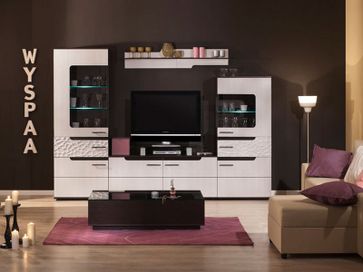 Шкаф-витрина Виспа — эффектная модель, которая дополнит продуманную систему хранения в современной гостиной. Глянцевые вставки с рельефом «волшебных пузырьков» и угловое остекление придают модулю особую привлекательность, а вместительные секции позволяют оптимально расположить все необходимые вещи.<br>