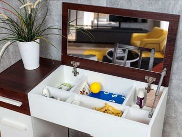 Туалетный столик Норвуд обладает интересной конструкцией. Откидная крышка скрывает нишу с органайзером для хранения мелких аксессуаров. На внутренней стороне крышки расположено зеркало. В закрытом состоянии модель можно использовать для работы на ноутбуке или с документами.<br> <br> Сборка: универсальная.<br> None Страна производства: Россия