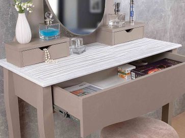 Туалетный столик Брауни — изысканная модель, в дизайне которой продумана каждая мелочь. Столешница с глубоким волнообразным брашированием и эффектом состаренного дерева покрыта защитным лаком. Наклон зеркала можно регулировать в зависимости от освещения. В трех ящиках найдется место для всех женских мелочей.<br> <br> Сборка: универсальная.<br> None Страна производства: Россия
