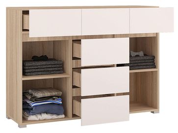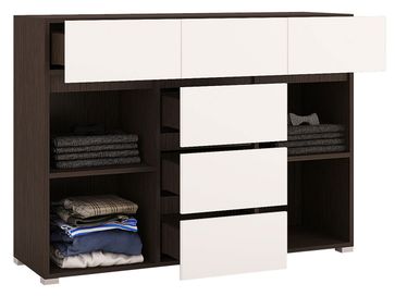 Комод Анталия представляет собой необычайно вместительный и продуманный модуль для хранения вещей. Шесть выдвижных ящиков позволят удобно разместить белье, постельные принадлежности и кофры с аксессуарами. За распашными дверцами скрыты две глубокие полочки.<br>