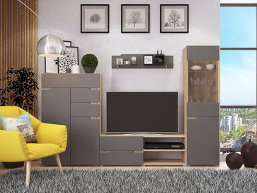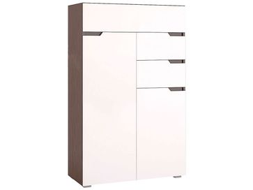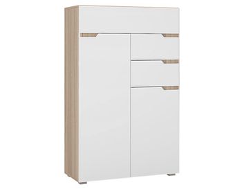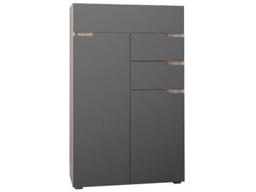 Стильный высокий комод Анталия представляет собой продуманный и вместительный модуль для хранения вещей с двумя малыми ящиками, одним большим и двумя шкафчиками. Модель сделана в модном дизайне и отлично впишется в любой интерьер гостиной, спальни или прихожей. В большом отделении за дверью — две полки, в малом — одна.<br> Характеристики: <br> Материал корпуса: ЛДСП.<br> Материал фасадов: МДФ с пленкой ПВХ Soft Touch.<br>