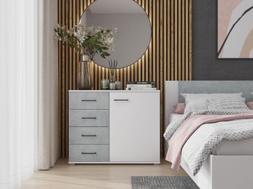 Комод Нова — функциональный элемент, который позволит аккуратно разместить предметы гардероба, аксессуары или документы. Четыре выдвижных ящика и два отделения за распашной дверцей организуют удобную систему хранения, а на просторную столешницу можно поставить телевизор.<br>