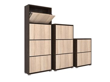 Обувница Танго станет практичным дополнением прихожей. Модель порадует продуманной функциональностью и компактными габаритами. Два закрытых отделения с четырьмя полками позволят разместить сезонную обувь, а на столешнице удобно хранить ключи и прочие важные мелочи.<br>