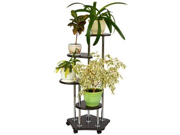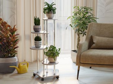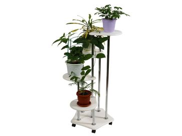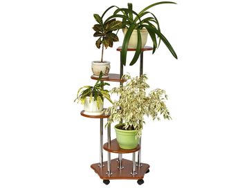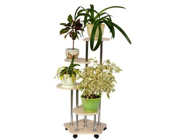 Цветочница Четверочка состоит из четырех ярусов. Прочная конструкция выдерживает большую нагрузку. Колесики делают модель мобильной даже вместе с растениями.<br>
