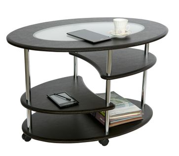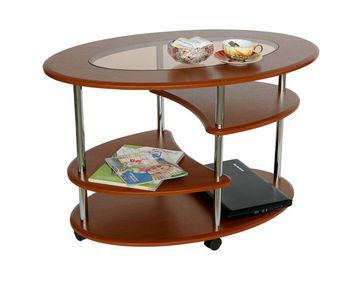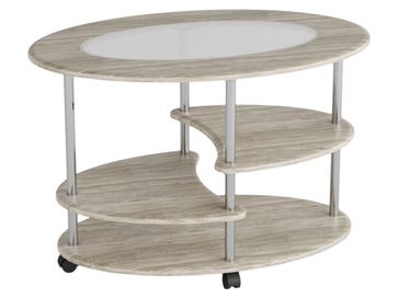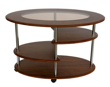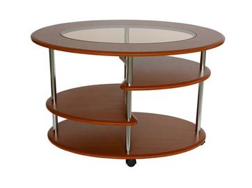 Журнальный стол Эллипс со стеклом подойдет для любого пространства: будь то гостиная, зона ожидания или комната отдыха.<br> Преимущества: <br> практичный — три полки подойдут для хранения журналов и прочих мелочей, а колесики на ножках делают этот стол мобильным;<br> красивый дизайн — овальная форма и вставка из стекла придадут изысканность вашему интерьеру;<br> прочный — качественные материалы и устойчивая конструкция.<br><br> Размер верхней полки (ВхШхГ): 200 х 400 х 500 мм.<br /> Размер средней полки (ВхШхГ): 300 х 400 х 500 мм.<br /> Размер нижней полки (ВхШхГ): 200 х 900 х 600 мм.<br> Ножки сделаны их хромированной трубы 25 мм, полки и столешница — из МДФ 16 мм. Вставка из матового белого стекла толщиной 4 мм придает столу более интересный внешний вид. None Страна производства: Россия