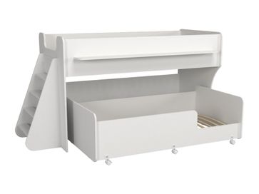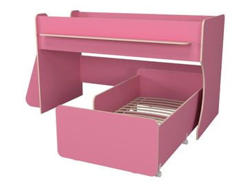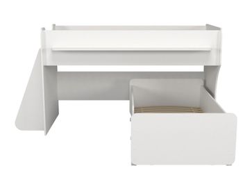 Кровать-чердак Ларни можно использовать в двух разных конфигурациях в зависимости от размеров комнаты. Поставив нижнюю кровать под верхним ярусом, вы получите двухъярусную кровать с лестницей, а выдвинув нижнее спальное место или установив его отдельно — кровать-чердак с игровой или рабочей зоной внизу.<br>