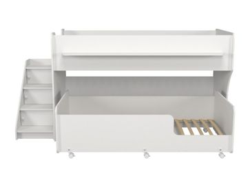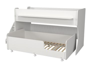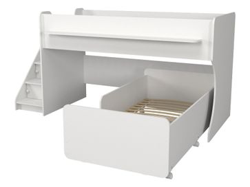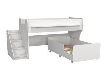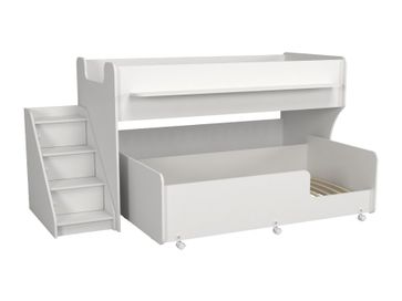 Кровать-чердак Минки — функциональная модель, которая трансформируется в несколько разных мебельных изделий: двухъярусную кровать, кровать-чердак со спальным местом наверху и игровой или рабочей зоной внизу. В комплект входит удобная лестница с широкими ступенями и ящиками.<br>