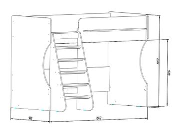 Характеристики: <br> Материал каркаса: ЛДСП.<br> Высота спального места от пола: 978 мм.<br> Рекомендуемая высота матраса: 100-150 мм.<br> Высота бортика: 360 мм.<br> Ориентация сборки: только так, как показано на изображении.<br>