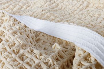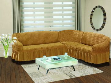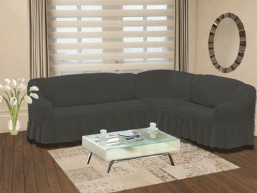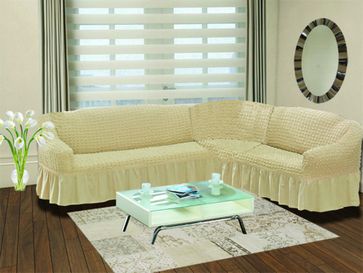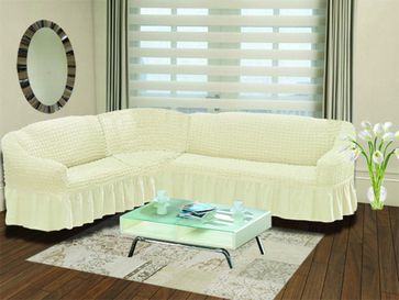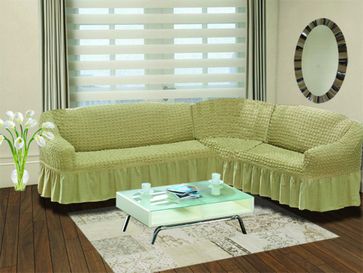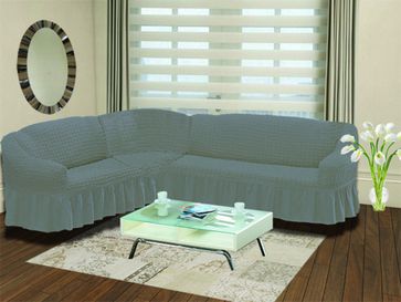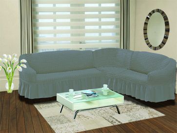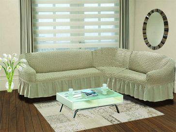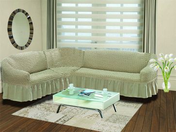 <br> Состав: 60% полиэстер, 40% хлопок. Благодаря такому сочетанию тканей чехол является гиппоаллергенным, очень мягким, легко тянущимся и прочным. Стирать можно в обычной стиральной машине при температуре не больше 30 градусов без отжима или в режиме «деликатная стирка».<br> Размеры:<br> высота спинки от посадочного места: 700-800 мм;<br> глубина посадочных мест: 700-800 мм;<br> ширина посадочных мест длинной стороны: 2100-2600 мм;<br> ширина посадочных мест короткой стороны: 1400-1900 мм;<br> ширина подлокотников: 250-350 мм;<br> высота юбки: 350 мм.<br> <br> Как надевать чехол: Натянуть один край чехла на длинную часть дивана.<br> Растянуть его до противоположной стороны, надеть на короткую часть.<br> Расправить на спинке.<br> Закрепить фиксатором.<br><br> Чехол поставляется в ПВХ упаковке на молнии. None Страна производства: Турция