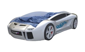 <br> Размер спального места (ШхГ): 800 х 1620 мм.<br> Каркас изделия выполнен из фасадной ЛДСП класса Е1. Материалом для бампера и колес послужил безвредный ударопрочный пластик толщиной 3 мм. Торцевые части обработаны мебельным кантом ПВХ. В основании — сверхпрочные латы из гнутоклееной березы. Рисунок представляет собой объемную ультрафиолетовую фотопечать на пленке.<br> Обратите внимание! При заказе вы можете выбрать один из вариантов комплектации: стандартная кровать или кровать с подсветкой дна.<br> Габариты подсветки дна (ВхШхГ): 10 х 300 х 300 мм.<br> Светодиодная подсветка с пультом управления работает от трансформатора напряжением 12B без нагревания и послужит отличной альтернативой ночнику, если малыш боится спать в темноте.<br> Внимание! Матрас в комплект не входит, его необходимо приобретать отдельно. Также можно приобрести наматрасник. Они представлены в разделе «Аксессуары и удачные дополнения». None Страна производства: Россия