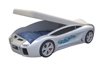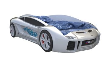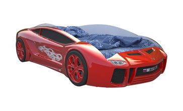 <br> Размер спального места (ШхГ): 800 х 1620 мм.<br> Каркас изделия выполнен из фасадной ЛДСП класса Е1. Материалом для бампера и колес послужил безвредный ударопрочный пластик толщиной 3 мм. Торцевые части обработаны мебельным кантом ПВХ. Рисунок представляет собой объемную ультрафиолетовую фотопечать на пленке.<br> В комплект входит матрас средней жесткости. Он состоит из поролона и синтепона, а сверху покрыт приятной на ощупь износостойкой велюровой тканью.<br> Обратите внимание! При заказе вы можете выбрать один из вариантов комплектации: стандартная кровать или кровать с подсветкой дна. Также дополнительно можно приобрести наматрасник. Он представлен в разделе «Аксессуары и удачные дополнения».<br> Габариты подсветки дна (ВхШхГ): 10 х 300 х 300 мм.<br> Светодиодная подсветка с пультом управления работает от трансформатора напряжением 12B без нагревания и послужит отличной альтернативой ночнику, если малыш боится спать в темноте. None Страна производства: Россия
