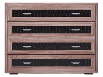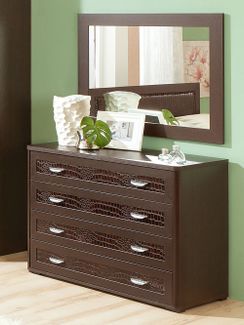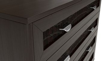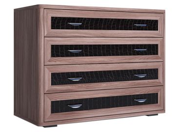 Стильный комод Парма с декорированными под кожу каймана фасадами прекрасно впишется в любой интерьер и позволит организовать порядок в вещах.<br /> Модель оснащена четырьмя вместительными ящиками. На широкой столешнице удобно расставить комнатные растения, любимые фото и нужные под рукой предметы.<br>