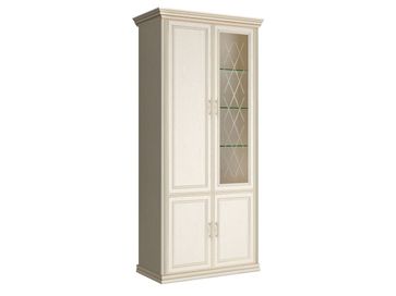 <br> Конструкция предусматривает три отделения за глухими створками и одно за стеклянной дверцей, фасад которой гравирован оригинальным орнаментом в виде ромбов. Вместе они призваны максимально оптимизировать обстановку, предоставив достаточно места для размещения большого количества различных вещей.<br> <br>Материал каркаса и полок: ЛДСП.<br> Материалы фасада: МДФ, стекло.<br> Петли на дверях имеют доводчики.<br> Материал ручек: сталь с порошковым напылением. None Страна производства: Россия