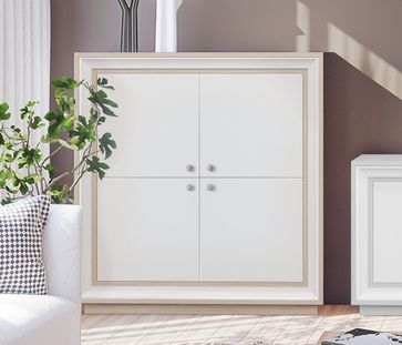 Прато — очаровательный распашной шкафчик с четырьмя дверцами. Модель позволит удобно и бережно хранить различные вещи: от белья и одежды до книг и аксессуаров.<br> Преимущества:<br> <br> модульная серия — изделие из коллекции мебели для оформления гостиной комнаты, представлено три интересных цветовых исполнения;<br> неоклассический стиль — станет идеальным дополнением современного интерьера, а также отлично подойдет к нестареющей классике;<br> вместительное наполнение — система хранения представлена четырьмя широкими полочками, на которых можно с удобством разместить самые разные предметы.<br><br> Для изготовления корпуса шкафчика используется качественная ЛДСП. Фасад модели и очаровательный багет произведены из МДФ. Ручки дверок металлические. Петли на дверях имеют доводчики.<br> Обратите внимание! Изделия из серий «Прато 2» и «Прато» отличаются по стилю исполнения и не могут гармонично дополнять друг от друга. None Страна производства: Россия