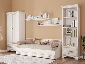 Преимущества:<br> <br> стильный дизайн — эффект золотого патинирования понравится ценителям классических интерьеров;<br> модульная серия — модель входит в одноименную коллекцию мебели, что позволит обустроить спальню или гостиную в едином стиле;<br> вместительность — на четырех открытых нишах можно разместить большое количество книг или предметов декора, а в двух выдвижных ящиках можно спрятать личные вещи.<br> <br>