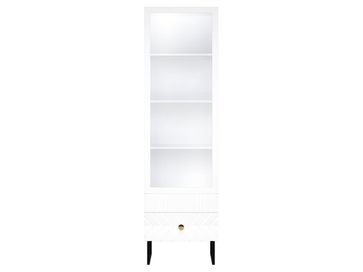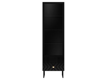 Шкаф-витрина Марсель смотрится очень эффектно благодаря сочетанию тонированного стекла, глянца и оригинальной ручки в золотом декоре. Такой дизайн привлекает внимание в любом интерьере. Внутреннее оснащение представлено полками и выдвижным ящиком — отличное решение для хранения сервизов, памятных сувениров и других необходимых вещей.<br>