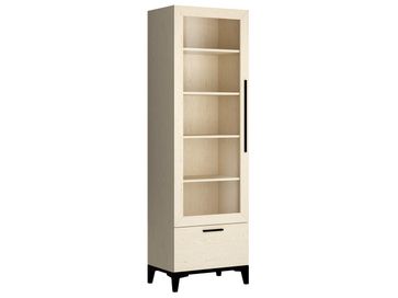 Шкаф-витрина Милан позволит представить содержимое полок в самом выигрышном виде. За стеклянной дверцей эстетично смотрятся посуда для торжественной сервировки, памятные сувениры, книги и интерьерные вазы. Особый лоск придает модели контрастное сочетание фасадов, ножек и фурнитуры.<br>