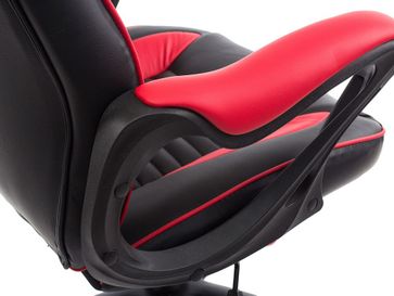 Игровое кресло Леон сочетает в себе современный дизайн, качество исполнения и комфортабельность. Высокая спинка с подголовником и выпуклыми боковинами позволяет без труда поддерживать осанку и снижает нагрузку на позвоночник. Скошенный край сиденья обеспечивает оптимальное положение ног, а высота посадки легко регулируется с помощью рычага.<br>