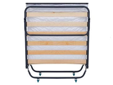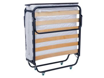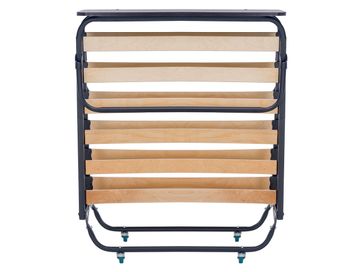 Характеристики: <br> Материал каркаса: стальная труба квадратного сечения 25 х 25 мм.<br> Материал основания: деревянные ламели.<br> Материал изголовья: ЛДСП.<br> Материал матраса: поликоттон.<br> Материал наполнителя матраса: нетканое полотно Hollcon.<br> Толщина матраса: 80 мм.<br> Максимальная нагрузка: 120 кг.<br> Размер в сложенном виде (ВхШхГ): 340 х 910 х 910 мм.<br>