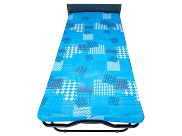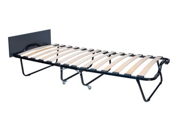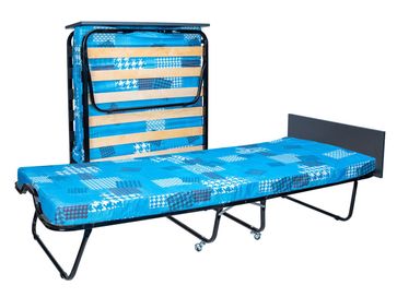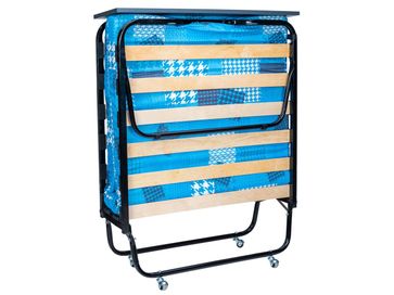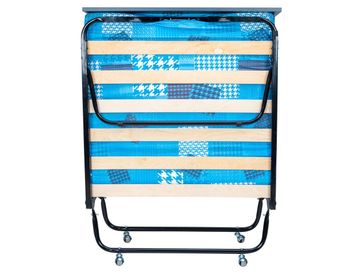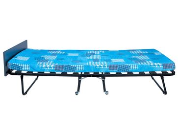 Характеристики: <br> Материал каркаса: стальная труба диаметром 25 мм.<br> Материал основания: березовые ламели.<br> Материал изголовья: ЛДСП.<br> Материал наполнителя матраса: поролон.<br> Съемный чехол на молнии.<br> Толщина матраса: 90 мм.<br> Максимальная нагрузка: 120 кг.<br> Высота от пола до ламелей: 300 мм.<br> Высота от пола до продольного фиксатора матраца: 370 мм.<br> Высота с изголовьем: 540 мм.<br> Размер в сложенном виде (ВхШхГ): 300 х 900 х 900 мм.<br>