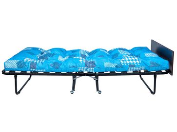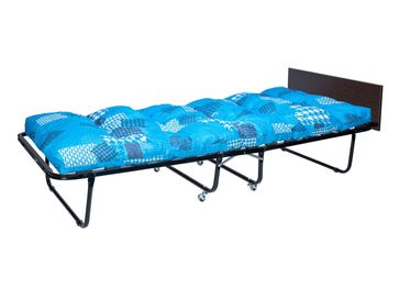 Раскладная кровать Слипи 5 воплощает в себе практичность и элегантность.<br /> <br /> Этот мобильный предмет мебели привнесет комфорта в отдых как на природе, так и в дачном домике. В сложенном виде кровать удобно хранить и перемещать в пространстве. В центральной части предусмотрены колесики.<br /> <br /> Ее размеры в сложенном виде следующие: <br> Высота: 300 мм;<br> Ширина: 900 мм;<br> Глубина: 900 мм.<br> <br /> <br> Модель оснащена интересной деталью — жестким изголовьем размером 18 х 900 х 295 мм, которое в сложенном виде выступает в роли столешницы и позволяет использовать кровать в качестве тумбы.<br> Каркас кровати изготавливается из стальной трубы диаметром 25 мм.<br /> Основание представляет собой березовые ламели. Это позволяет кровати выдерживать нагрузку до 120 кг.<br /> Наполнение матраса — поролоновая крошка. Он располагается на удобной высоте от пола: 390 мм и никак не закреплен на основании. При сборке кровати матрас снимать не нужно. Толщина матраса составляет 100 мм. <br> Обратите внимание! Производитель оставляет за собой право изменять расцветку матраса. Каркас при этом всегда черного цвета. None Страна производства: Россия