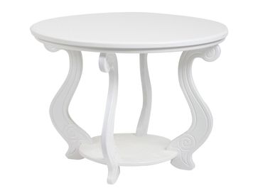 Журнальный столик Виват М — очаровательная модель, которая станет оригинальной изюминкой обстановки. Двойная столешница и витиеватые опоры в виде колонн дарят образу особый шарм. Полочка с интересным резным рисунком разгрузит основную поверхность.<br>