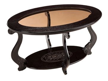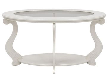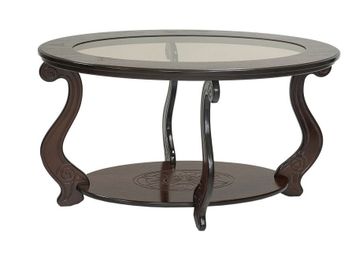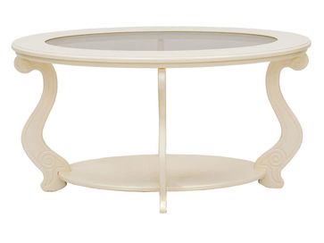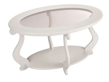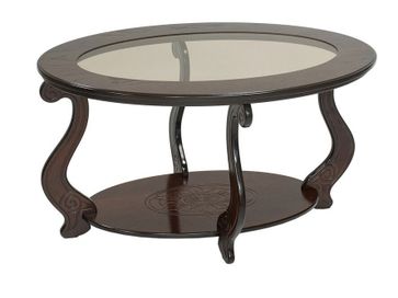 Овальный журнальный столик Виват С — это изящность, практичность, очарование и надежность в одном предмете мебели. Модель с оригинальной стеклянной вставкой по центру столешницы и притягательным резным декором станет настоящим украшением обстановки.<br>
