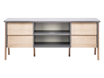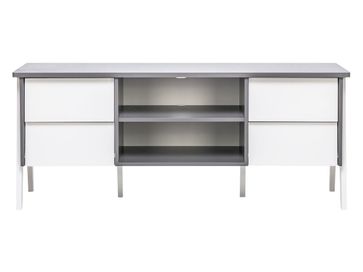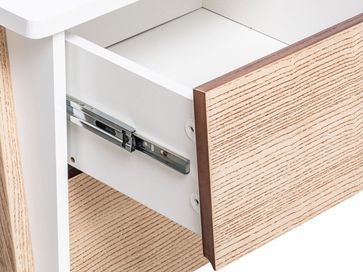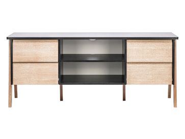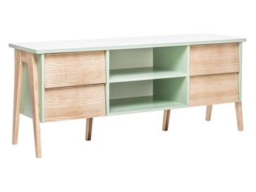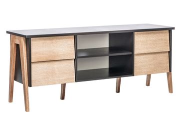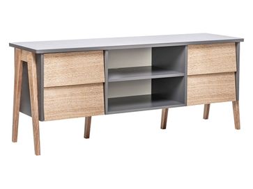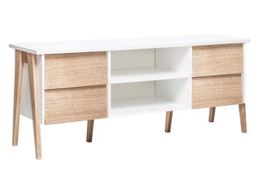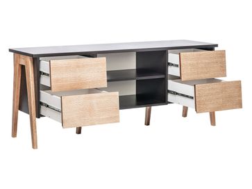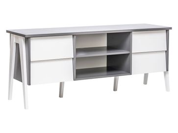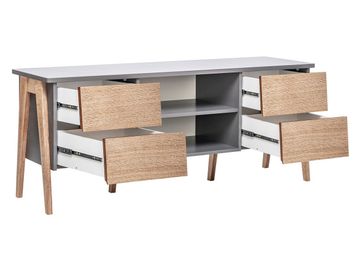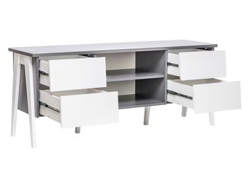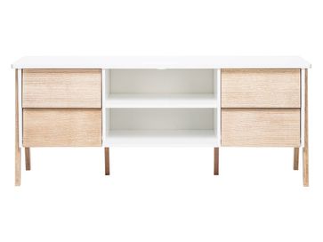 ТВ-тумба Сканди станет стильным и функциональным дополнением интерьера спальни или гостиной. Широкая столешница подойдет для размещения монитора практически любой диагонали, а в выдвижных ящиках удобно хранить домашнюю медиатеку. Конструкцией предусмотрена открытая секция для видеотехники.<br>
