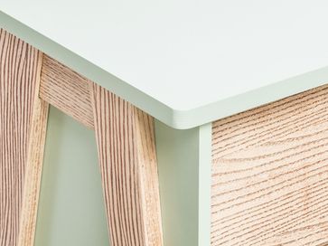 Характеристики: <br> Материал корпуса и фасадов: МДФ 16 мм, строганный шпон ясеня.<br> Материал ножек и столешницы: березовая фанера 20-24 мм, шпон.<br> Тип направляющих: шариковые.<br> None Страна производства: Россия