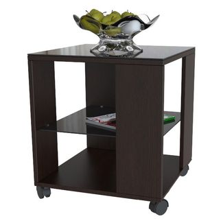 Столик имеет стеклянную столешницу и две полочки, средняя выполнена из стекла. </br>Изделие оснащено колесными опорами, что позволит без труда перемещать его по комнате.<br>
