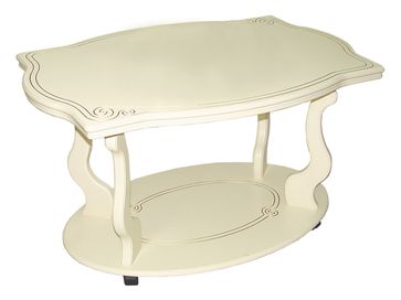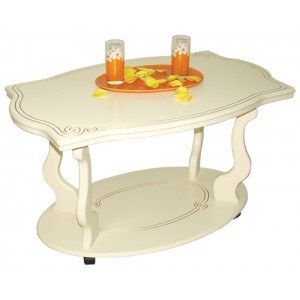 Журнальный столик имеет столешницу, изготовленную из МДФ и шпона ценных пород дерева, а так же опоры из натурального дерева. Качественный и надежный стол имеет благородный оттенок слоновой кости. Внизу расположена полка размером 84х50 см, толщиной 17 мм. None