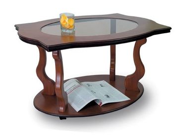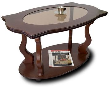 Журнальный столик имеет столешницу, изготовленную из МДФ и шпона ценных пород дерева, опоры выполнены из натурального дерева. В центре столешницы имеется вставка из стекла, что придает изделию элегантность и внешнюю легкость. Стол представлен в нескольких благородных оттенках натурального дерева.<br> Ножки стола выполнены из массива бука, столешница покрыта шпоном дуба. None Страна производства: Россия