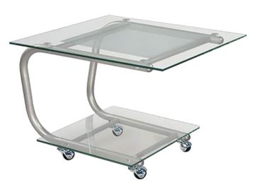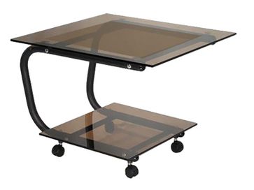 Журнальный столик Дуэт-9 имеет столешницу, выполненную из прозрачного или тонированного стекла с полированной кромкой и нанесенным рисунком. Модель оснащена колесными опорами, что позволяет с легкостью перемещать столик при необходимости.<br>