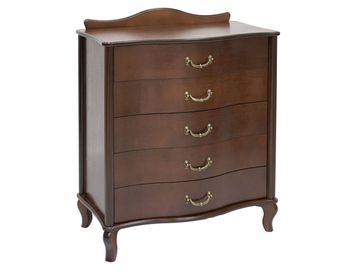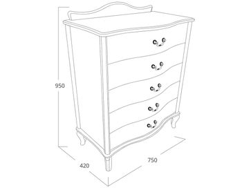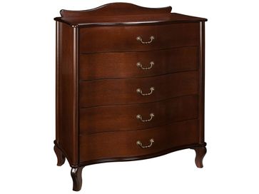 Изысканный комод Джульетта 2 выполнен в классическом стиле и оснащен изогнутыми ножками. Модель имеет пять вместительных ящиков с изящными металлическими ручками, благодаря чему вы сможете организовать полноценную систему хранения всех необходимых вещей.<br>