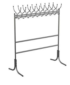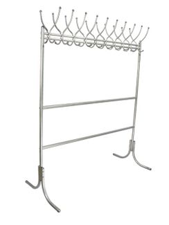 Напольная вешалка имеет 10 пар крючков на стальной мебельной трубе. Вешалка имеет сборно-разборную конструкцию, что делает ее идеальной для транспортировки. Модель позволяет разместить большое количество одежды и головных уборов. Изделие упаковано в гофротару вместе с необходимой фурнитурой для сборки и подробной инструкцией.<br> None Страна производства: Россия
