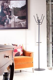 Стильная напольная вешалка прекрасно дополнит современный интерьер приемной офиса или прихожей. </br>Модель имеет десять крючков для верхней одежды и головных уборов, а также два малых крючка для сумок. </br>Наконечники крючков выполнены из пластика в виде шариков, которые идеально подходят для петель одежды. </br>Широкое основание, диаметром 410 мм, обеспечивает устойчивость конструкции.