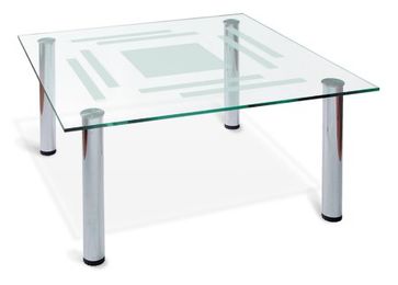 Журнальный столик представляет собой прекрасное сочетание прозрачного стекла квадратной формы и цилиндрических хромированных опор. На поверхность стола нанесен рисунок, толщина столешницы - 10 мм. Изящная и функциональная модель станет незаменимой частью интерьера.<br> None Страна производства: Россия