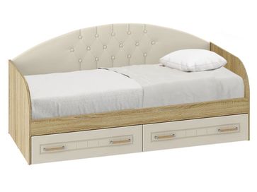Односпальная тахта Маркиза станет уютным дополнением спальни. Спинка защищает от соприкосновения со стеной и предотвращает потертости на обоях. Отсутствие острых углов на боковинах позволяет избежать случайных травм, а приятные оттенки создают спокойную атмосферу.<br>