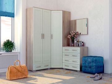 Угловой шкаф Маркиза — это удобный и функциональный предмет мебели, который расширит систему хранения. Благодаря угловой конструкции шкаф позволяет рационально использовать площадь комнаты. Внутри модели есть множество полочек и штанга для плечиков.<br> Преимущества:<br> регулируемые опоры — модуль можно установить даже на неровную поверхность;<br> бархатистая поверхность фасадов — с древесным тиснением, не только приятна на ощупь, но и стильно смотрится в интерьере;<br> универсальная сборка — фасад можно навесить как на левую, так и на правую сторону;<br> угловая конструкция — рациональное использование площади комнаты;<br> модульная серия — широкий выбор изделий из коллекции Маркиза подойдет в любую комнату, от гостиной до прихожей.<br> <br> Характеристики:<br> Материал каркаса: ЛДСП.<br> Материал фасада: МДФ.<br> Тип сборки: универсальная.<br> Внутреннее наполнение: полки ЛДСП, штанга.<br> Регулируемые опоры до 13 мм.<br> Двери дополнены четырехшарнирными петлями.<br> Элегантные ручки в цвет корпуса.<br> Кромка нового поколения из АБС-пластика.<br> Оригинальная фрезеровка фасадов.<br> <br> None Страна производства: Россия