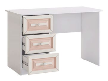 Элегантный детский письменный стол с тумбой Алиса подойдет для романтичных и творческих натур. Тумба оборудована тремя вместительными ящиками с резными кремовыми фасадами с зефирно-розовой патиной.<br>