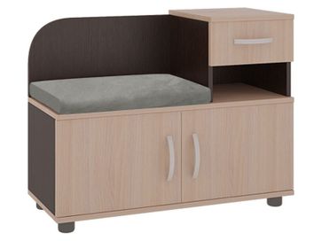 Изделие выполнено из ЛДСП толщиной 16 мм. Торцевые части деталей обработаны кромкой ПВХ толщиной 0,4 и 1 мм.<br /> Мягкая подушка на сиденье входит в комплект.<br /> Модель универсальна по сборке.<br> Высота ниши за распашными дверцами: 312 мм.<br /> Высота выдвижного ящика: 136 мм.<br /> Высота открытой ниши под ящиком: 174 мм.<br /> Ширина выдвижного ящика составляет 290 мм.<br /> Размер опоры (ВхШ): 50 х 44 мм.<br> None Страна производства: Россия