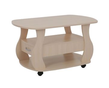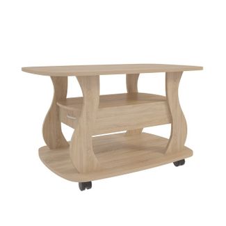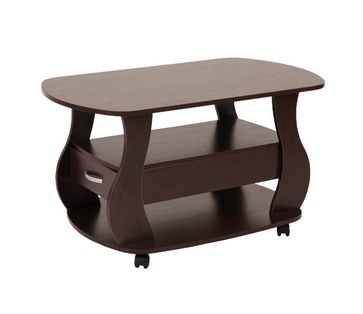 Стильный и функциональный журнальный столик с полочкой и двумя небольшими ящиками для хранения мелочей и аксессуаров. Кроме того, модель оборудована колесиками для легкого перемещения столика по комнате.<br>
