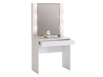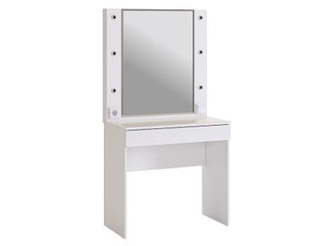 Туалетный столик Гламур — идеальное решение для оформления комнаты юной леди. Большое зеркало, яркая подсветка и вместительный ящик для аксессуаров — то, что нужно каждой девочке-подростку. Конструкцией предусмотрена розетка для подключения фена и другой техники. В комплект входят патроны для ламп, выключатель и провод с вилкой (3 метра).<br> <br> Сборка: универсальная.<br> <br> Обратите внимание, лампы в комплект не входят. None Страна производства: Россия