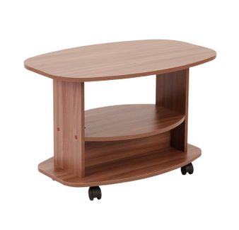 Лидерио — классический журнальный столик с овальной столешницей. Конструкцией предусмотрены полочки для журналов, газет и аксессуаров. Модель, бесспорно, станет гармоничным элементом любого интерьера.<br> Преимущества: <br> практичный — оснащен удобной полкой для экономии пространства;<br> мобильный — благодаря колесикам его легко перемещать по квартире;<br> безопасный — края столешницы закруглены.<br>