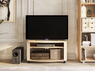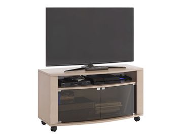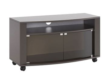 Это очень удобная и оригинальная тумба, которая станет функциональным дополнением любого интерьера. Колёсики обеспечивают модели мобильность. Тумба имеет гнутые стеклянные дверки и удобную нишу под аппаратуру. ТВ-тумба рассчитана на установку телевизора диагональю до 40".<br> Характеристики:<br> Материал: ЛДСП, стекло.<br> Высота открытой полки: 102 мм.<br> Максимальная нагрузка: 50 кг.<br> Высота стеклянной дверки: 288 мм.<br> <br> None Страна производства: Россия