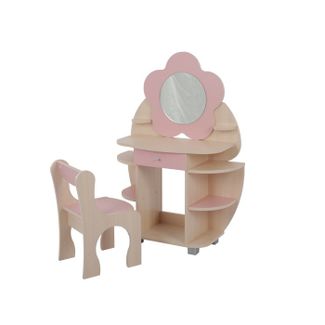 Набор для юных модниц состоит из стульчика и трюмо. Это настоящее сокровище для маленьких принцесс. Этот набор не только будет радовать вашу дочку, но также приучит ее хранить свои вещи в порядке и поможет сохранить мамину косметику в целости и сохранности.<br>