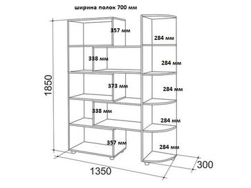 Стеллаж универсальный и может быть собран в любую сторону. Высота ниш в раздвижной части составляет 305 и 343 мм.<br /> Высота угловых полок составляет 340 мм.<br> Если поставить стеллаж углом, то длина отдела с полками составит 968 мм, второй стороны — 700 мм.<br>