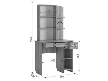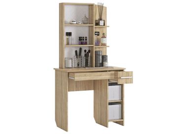 Туалетный столик Виктория прекрасно дополнит интерьер спальни. Наполнение в виде двух отделений за распашной дверцей, выдвижного ящика и открытых полок, а также ниш за зеркальным полотном идеально подойдет для хранения косметики, парфюмерии и аксессуаров.<br> None Страна производства: Россия