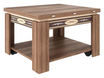 Элегантный журнальный столик Адам 1 стильно разнообразит как классический, так и современный интерьер гостиной или спальни. Царга модели декорирована изящными рисунком. Благодаря поворотно-раскладному механизму столик раскладывается, позволяя быстро сервировать чай к приходу гостей. В основании есть полочка для мелочей. За ножками спрятаны колесики для легкого перемещения по комнате. Рисунок нанесен при помощи принтерной печати.<br>